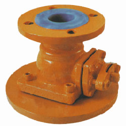 本系列產品是襯氟球閥的延伸產品,為各種強腐蝕性介質的啟閉控制而設計,閥門的兩端法蘭大小不等,一端為標準法蘭一端為與反應釜底放料孔配套的法蘭,很方便的就可以連接在反應釜底。其結構形式為浮動直通式,連接形式為法蘭,閥外殼采用碳鋼內襯氟塑料,閥球為與閥桿一體式金屬嵌件外包氟塑料工藝制造,具有耐腐密封性好、啟閉靈活、快速的特點且外型美觀、強度高、經久耐用。是現代化工工藝流程中使用最為廣泛的耐腐閥門。