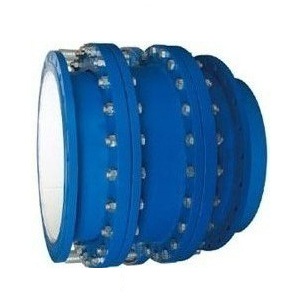 大撓度松套補償接頭由短管法蘭、本體、壓蓋、檔圈、限位塊、密封副、壓緊構件組成,用于吸收軸向位移和撓度為6°~7°的角位移的管道松套連接的裝置。它采用獨特的抗軸力設計,結構簡單、密封性能可靠、抗拉脫力強。該產品具有較大的可撓量和伸縮量,適用于工況惡劣、地形復雜場合的的管道連接。