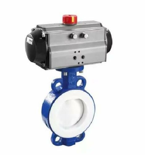 氣動(dòng)對(duì)夾襯氟蝶閥,采用高溫模壓襯氟塑料工藝,與介質(zhì)接觸的閥體內(nèi)壁和閥內(nèi)組件可以包覆一層聚全氟乙丙烯(F46)、聚四氟乙烯(PTFE)、 可溶性聚四氟乙烯(PFA)等耐腐蝕材料,完全阻止腐蝕性介質(zhì)與金屬閥體外殼以及金屬閥芯的接觸,避免金屬部件被腐蝕而損壞。