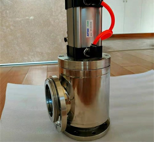 GD型高真空擋板閥用于接通或切斷真空管路中的氣流。控制執行氣缸驅動閥門作啟閉運動。帶反饋信號裝置。適用介質為純凈空氣和非腐蝕性氣體。高真空擋板閥按軸封結構可分GD-J型橡膠軸封和GD-J(b)型波紋管軸封兩種。按通導形式可分GD-J為角通型式,GD-S為帶預抽口的三通型式。GDG-法蘭高真空擋板閥