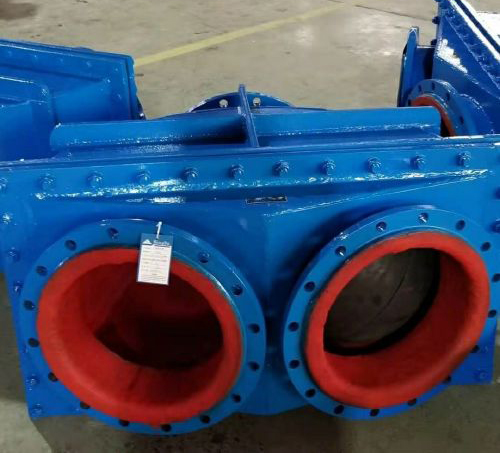 換向襯膠止回閥主要用于各類礦山、電廠、化工廠、水處理廠、石油、大型潤滑系統(用作棱閥)等工業泵一用一備的場合。它由上下二個閥體通過方形或橢圓形法蘭連接在一起,下閥體上有兩個漿液進口,上閥體上部有一個漿液出口,密封位于閥腔內。其特征在于上閥體內設有密封球的活動滑道,在滑道的兩端分別高有一個導向楔塊,下閥體的兩個漿液進口傾斜布置,閥內的密封球采用橡膠球或鋼球,與現有技術相比可節省一條管路,不會造成漿液中固體物的淤積,切換泵時操作方便順暢,對于廠礦在實現自動化控制時操作方便順暢,在實現自動化控制時可省去兩套閥門的控制點。具有漿液切換迅速、密封性好、耐磨性強、使用壽命長等優點。